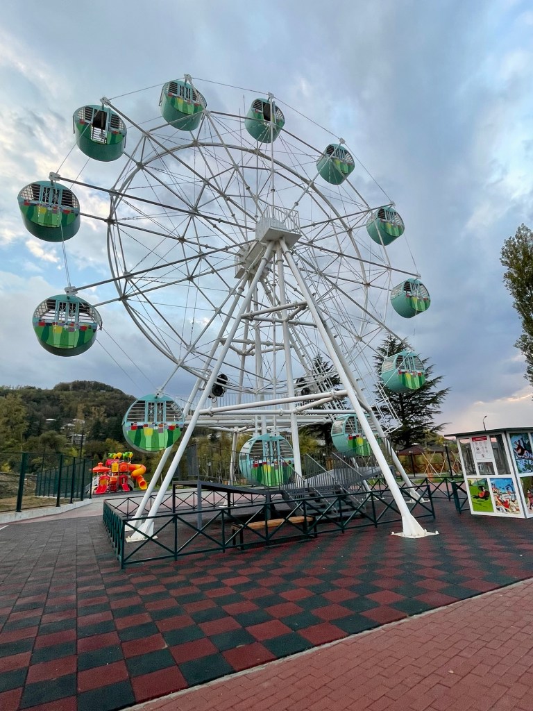 The longest cable car goes up to the top of a hill on the southern side of the town, and not surprisingly they have built a small amusement park with a Ferris wheel and great views of the city below. In addition to the small Ferris wheel that we patronized, we also noticed a lot of mid-rise apartment buildings around the upper edges of the city that were very run down and in our opinions should have been probably condemned. We later learned that there are a lot of squatters (many Russian refugees) that are living in these buildings even though they look like they could collapse at any time.