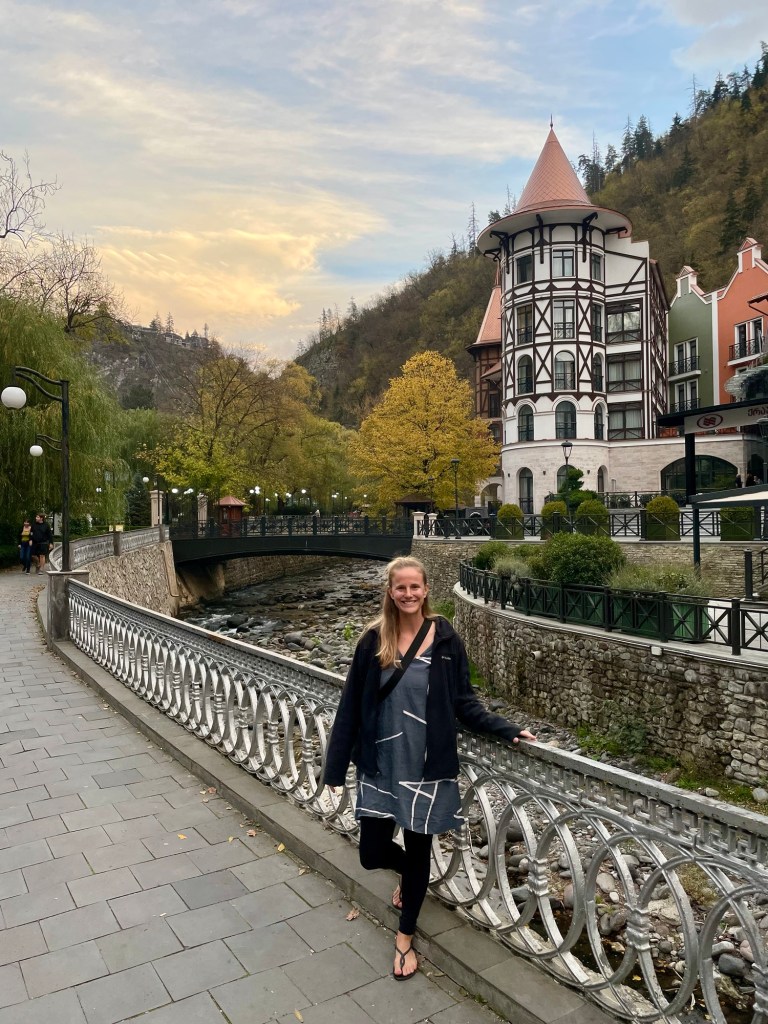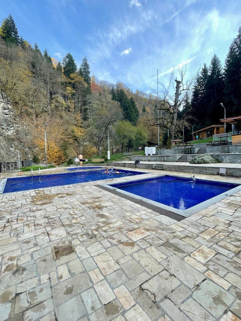 After a thirty minute soak we walked back to town enjoying the fall colors in the trees and even stopped for a hot mulled wine on our way. That evening we found a cute restaurant for dinner near our guesthouse, and enjoyed more of the delicious Georgian cuisine. I topped off our Borjomi trip with a run the following morning to take in our last Mountain views in this region and take a better look around the local town. I also quickly realized how out of shape I was!