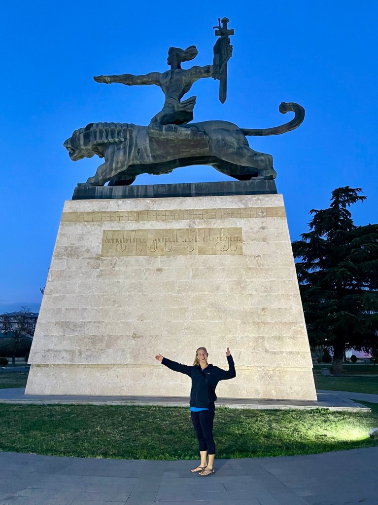 We had dinner at a lovely Indian restaurant, and enjoyed an evening walk around the old town taking in the sights and the nightlife. We found interesting statues in a main park including one of a giant piano which could even be played when it was first built. We also came across one of the newer theaters that has a clock tower outside that looks straight out of Alice in Wonderland. Unfortunately, we were only able to enjoy one evening in the capital before renting a car the next morning to head further east, but we would be back to take in more sights soon after returning from a two day adventure in the wine region near the Azerbaijan border!