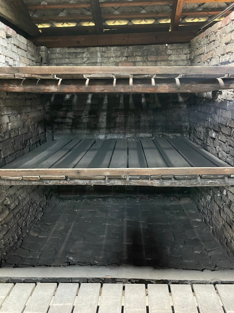 The bunkhouses have been converted into a museum and we could very clearly see the living conditions of the inmates, the prison cells, and the torture they were put through. Most disturbing was the hospital building where Josef Mengele carried out his horrific experiments, and rows and rows of photos of inmates with their admission dates and date of death. Photos and records were common at the start of the war but were later deemed too expensive and cumbersome as the population of the camps rose. The hardest building to enter was the one where they showed items collected from the prisoners as they arrived such as suitcases, eyeglasses, shoes, and even woman’s hair that was shaved off and used to weave into blankets.