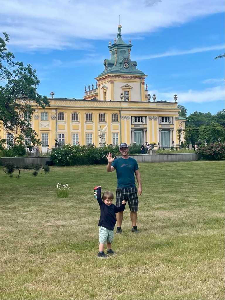 For our final day in Warsaw, we woke up and headed to a breakfast market in another popular park. It was mid May and Polish residents were clearly enjoying the warm weather and everything turning green after a cold dark winter. This Sunday market was brilliant. There were several dozen food stalls with all different sorts of foods, drinks, and coffees. There were little chairs that you could set up in the grass, while many people just set up their own blankets. The kids could run around and play, which kept Arlo entertained and happy. We met up with some of Jon and Donna’s colleagues from their school, and it was nice to meet and get advice for our future travels from their friends who had lived in Poland for several years.